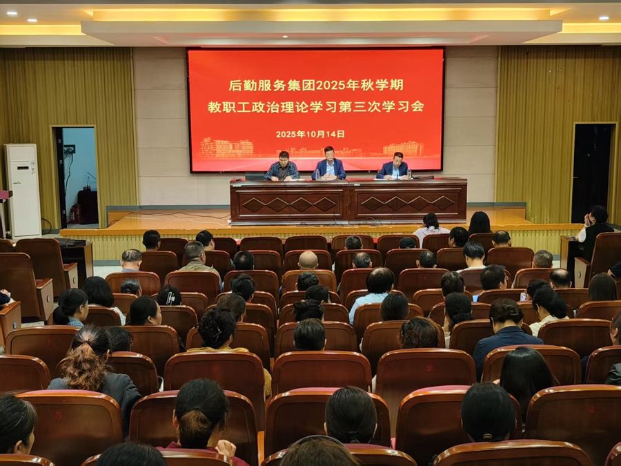 10月14日上午,后勤服务集团在机械馆报告厅召开 2025年秋学期第三次教职工政治理论学习,集团全体教职工与聘用制员工200多人参会,会议由集团党委书记李刚主持 。