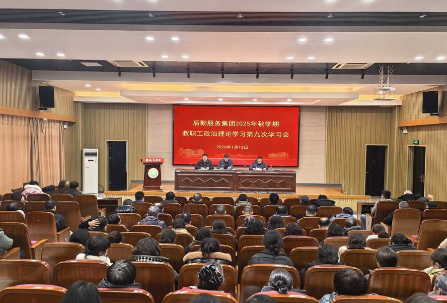 1月13日上午,后勤服务集团在希望大道校区机械馆报告厅召开 2025年秋学期第九次教职工政治理论学习,集团全体教职工与聘用制员工200多人参会,会议由集团党委书记李刚主持。