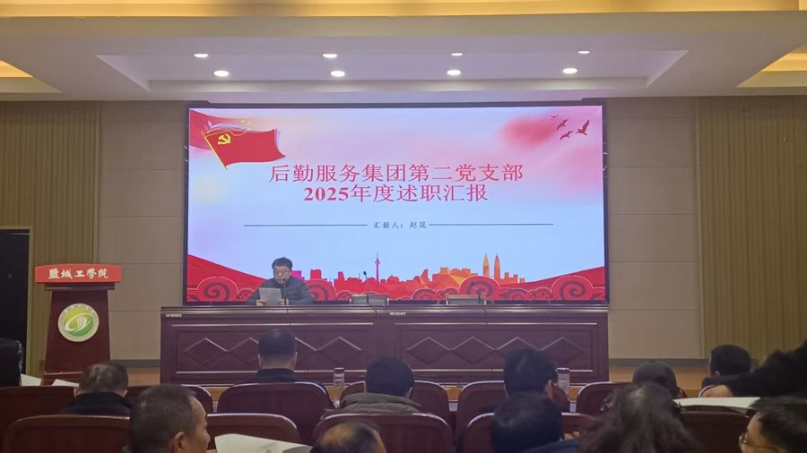2025年12月31日上午,盐城工学院后勤服务集团党委在南校区机械馆报告厅召开2025年度党支部书记述职会。集团全体党员参会,会议由党委书记李刚主持。
