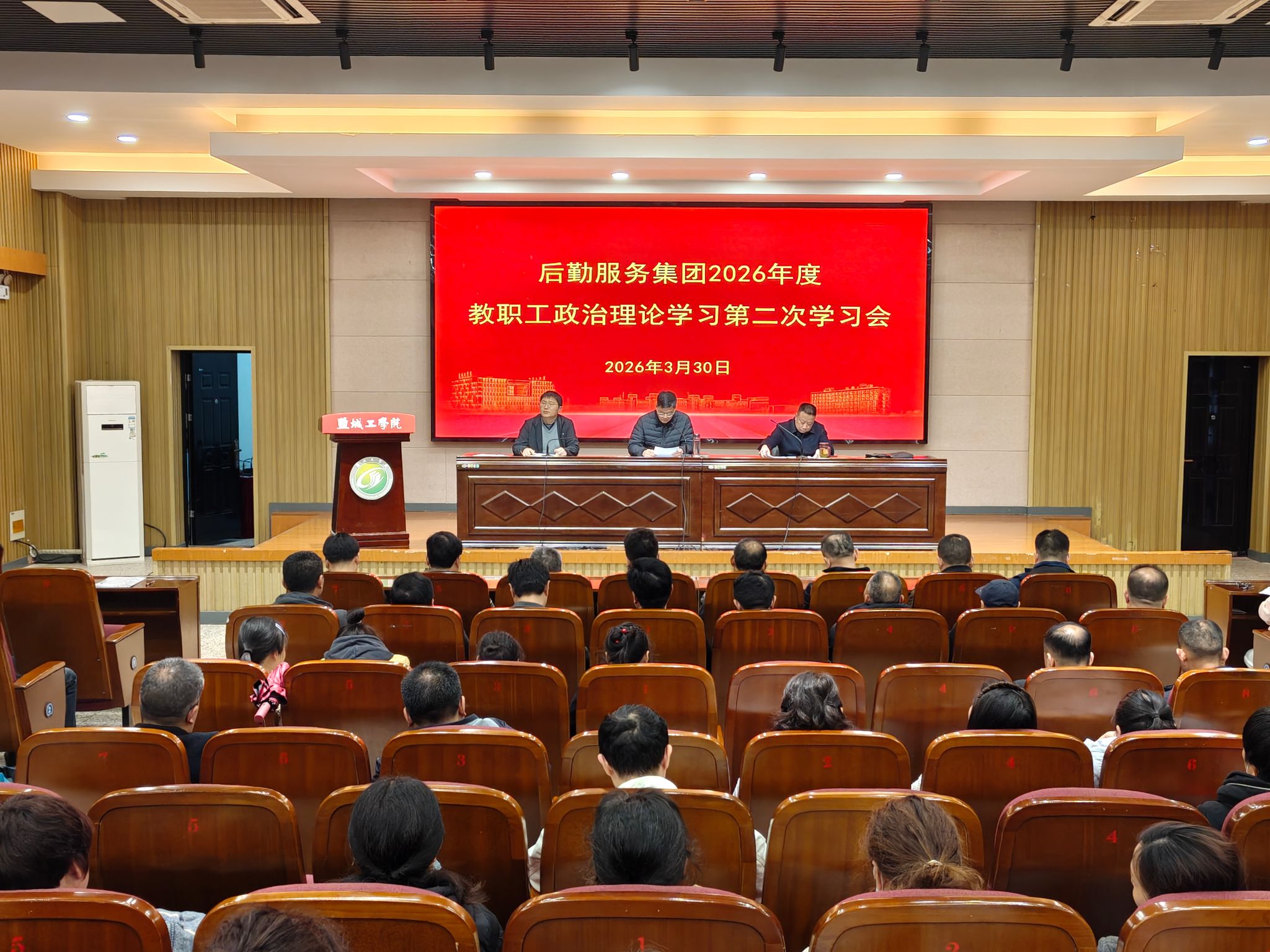 3月30日下午,后勤服务集团在希望大道校区机械馆报告厅召开2026年度第二次教职工政治理论学习会。集团全体教职工及聘用制员工200余人参加会议,会议由集团党委书记李刚主持。