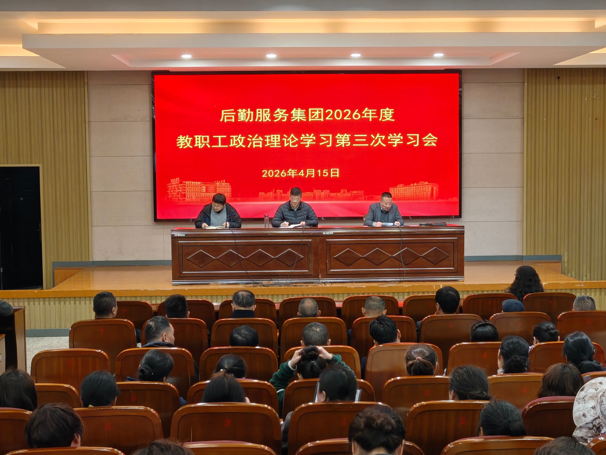 4月15日上午,后勤服务集团在希望大道校区机械馆报告厅召开2026年度第三次教职工政治理论学习会。集团全体教职工及聘用制员工200余人参加会议,会议由集团党委书记李刚主持。